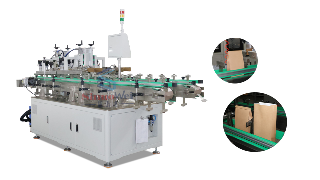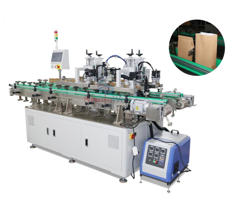 食品包装袋の縁折り・シール機 食品包装袋の密封用に特別に設計されています。 二重折り後にホットメルト接着剤を塗布することで、確実で確実なシールを実現します。幅広い食品包装袋のサイズに対応し、高い適応性を備えています。